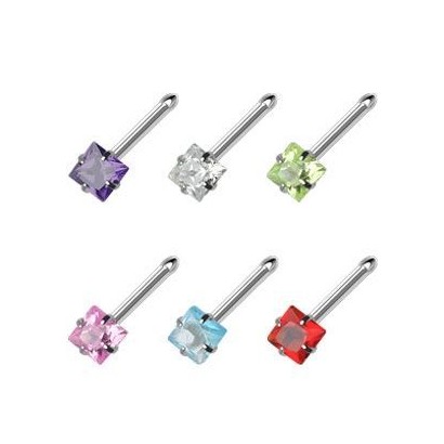 Piercing do nosu z chirurgické oceli s čtvercovým zirkonem.