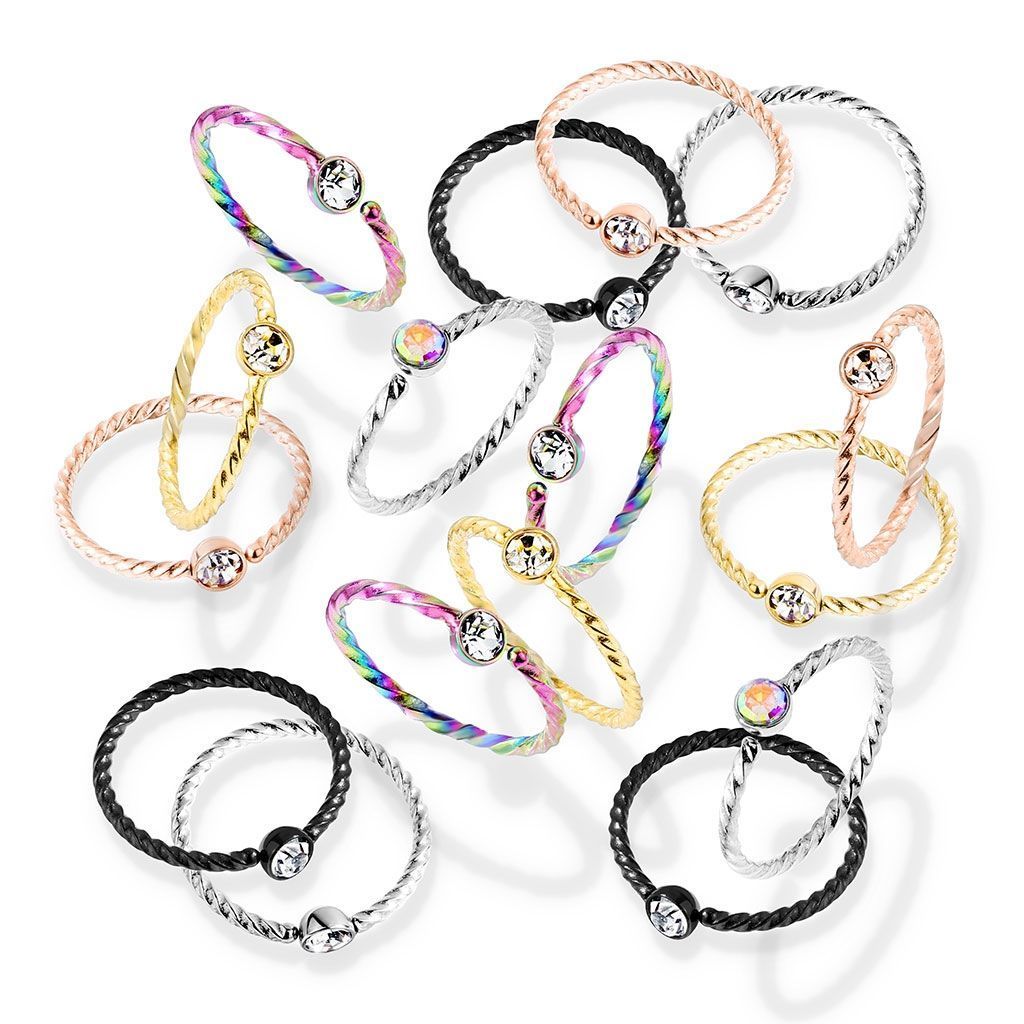 Piercing kroužek s kuličkou, která je osazena zirkonem.