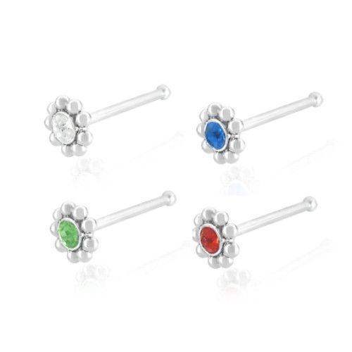 Piercing nosovka - piercing do nosu. S ozdobou kytičky, která má uprostřed kamínek.