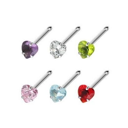 Piercing do nosu z chirurgické oceli se zirkonem ve tvaru srdce.