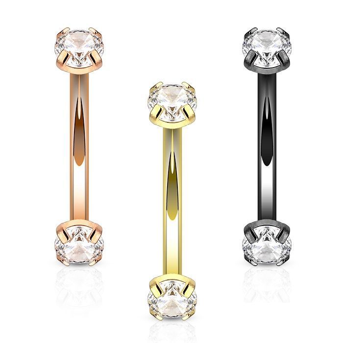 Piercing do obočí zdobený 2ma kamínky čiré barvy