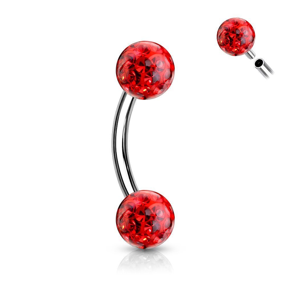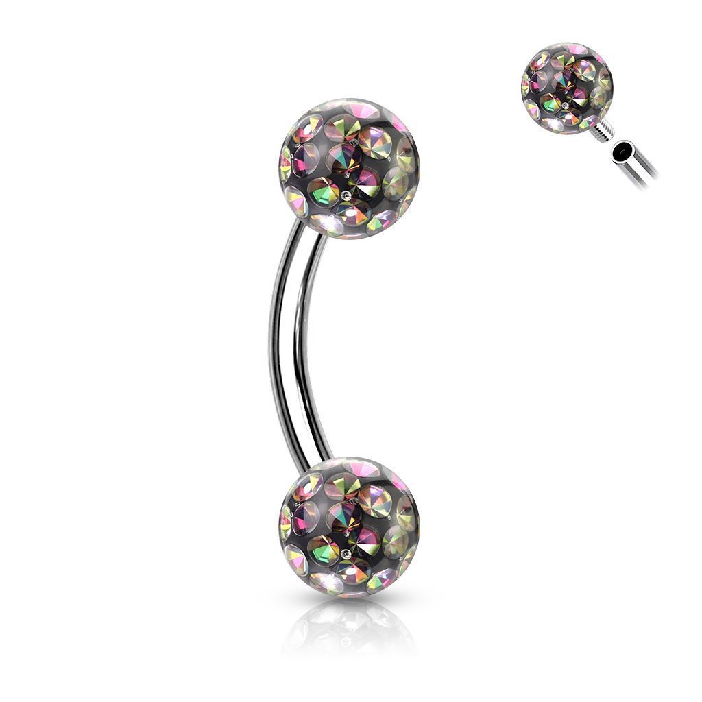 Piercing do obočí s kuličkami zdobenými Swarovski krystaly.