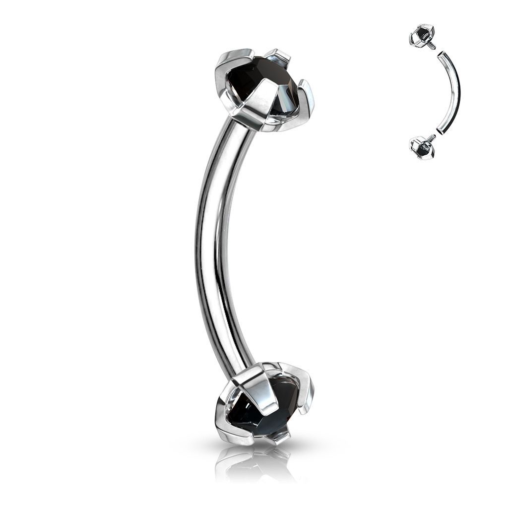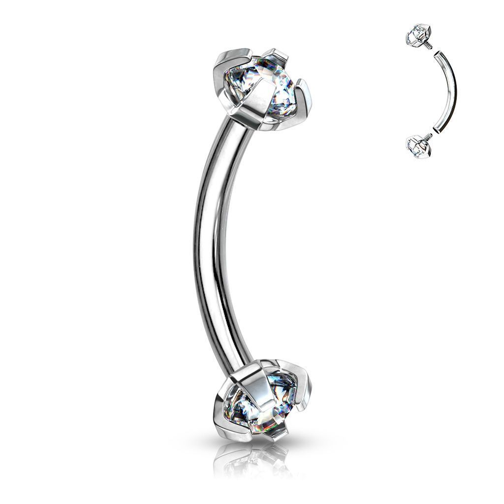 Piercing do obočí s vnitřním závitem zdobený zirkony.