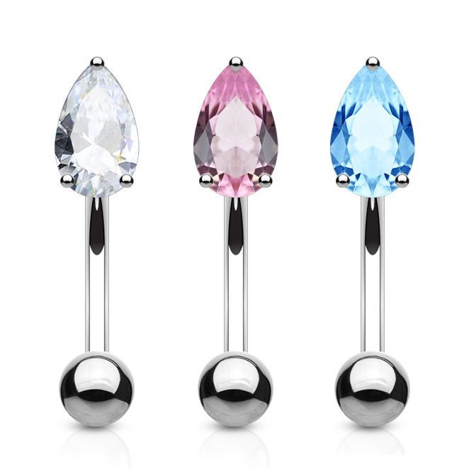 Piercing do obočí se zirkonem ve tvaru kapky.