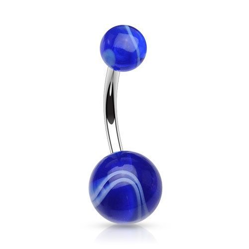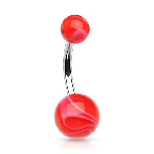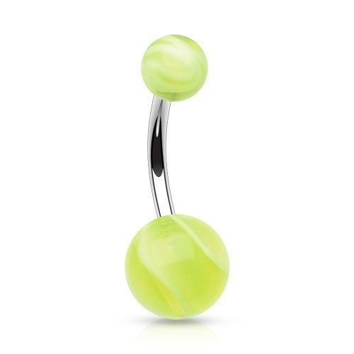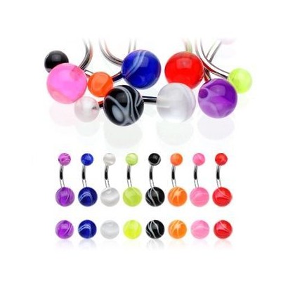 Piercing banánek do pupíku s akrylátovými kuličkami.