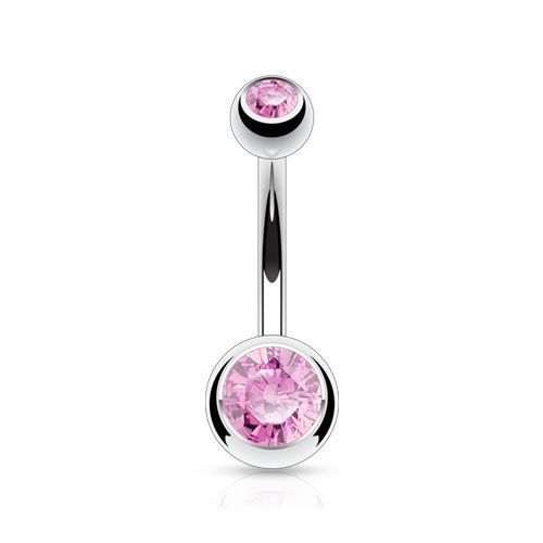 Piercingový šperk určený pro piercing pupíku. Ve spodní i horní kuličce je zirkon. Vhodný i  pro první propíchnutí.