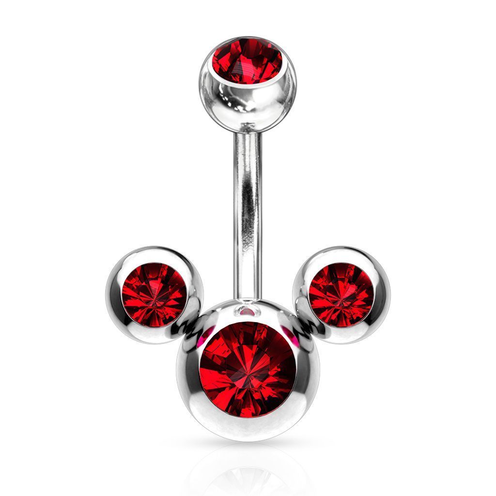 Piercing banánek do pupíku. Spodní kulička připomíná hlavu mickey mouse.