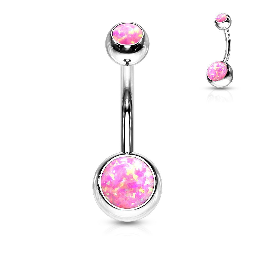 Piercingový šperk určený pro piercing pupíku. S kuličkami osazenými syntetickým opálem..