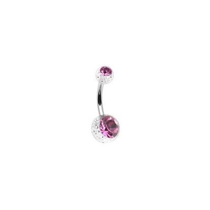 Piercing banánek do pupíku, chirurgická ocel s třpytkovými akrylátovými kuličkami, které vyniknou pod UV světlem. Kuličky jsou navíc osazeny zirkony.