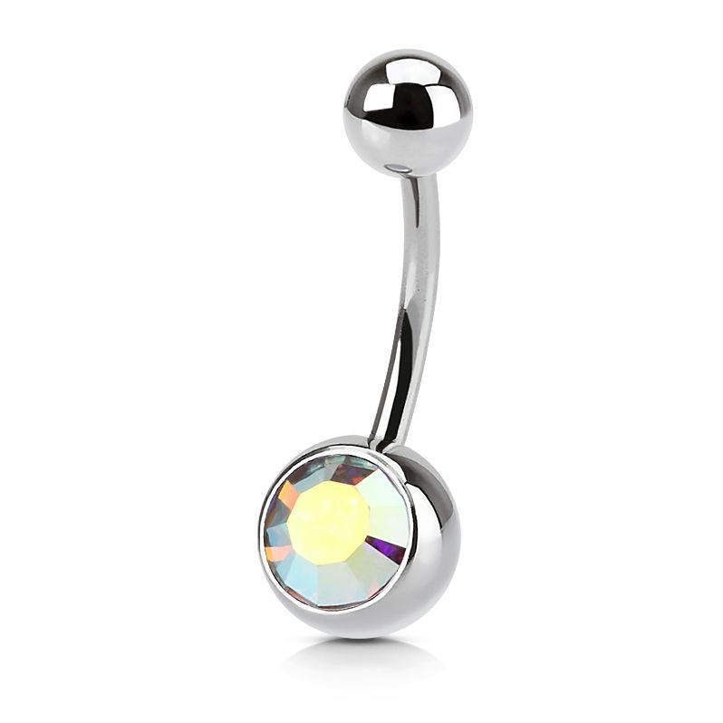 Piercing vyroben z chirurgické oceli. Velká kulička osazena zirkonem.