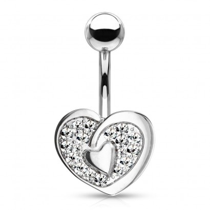 Piercing do pupíku srdce zdobené zirkony čiré barvy.