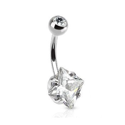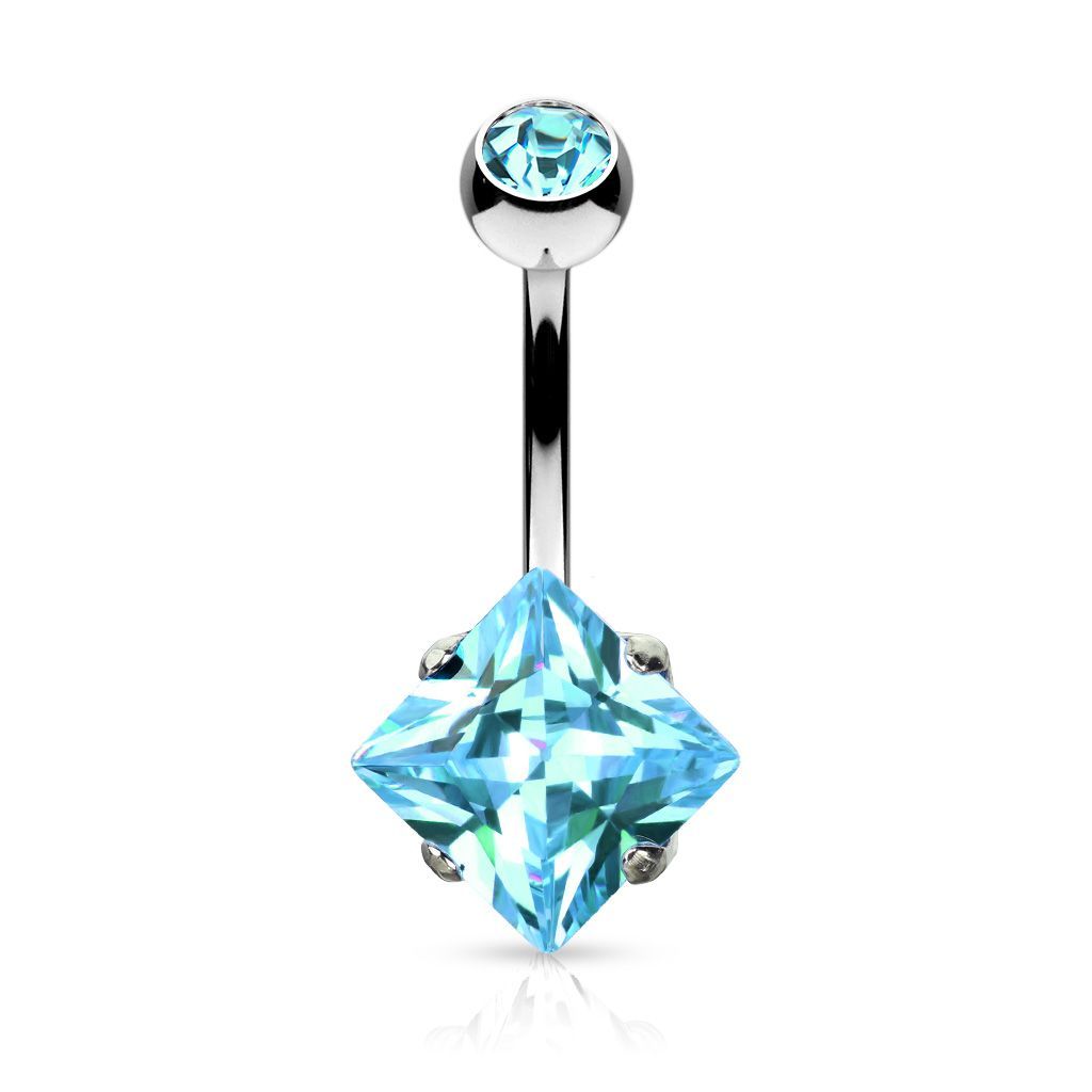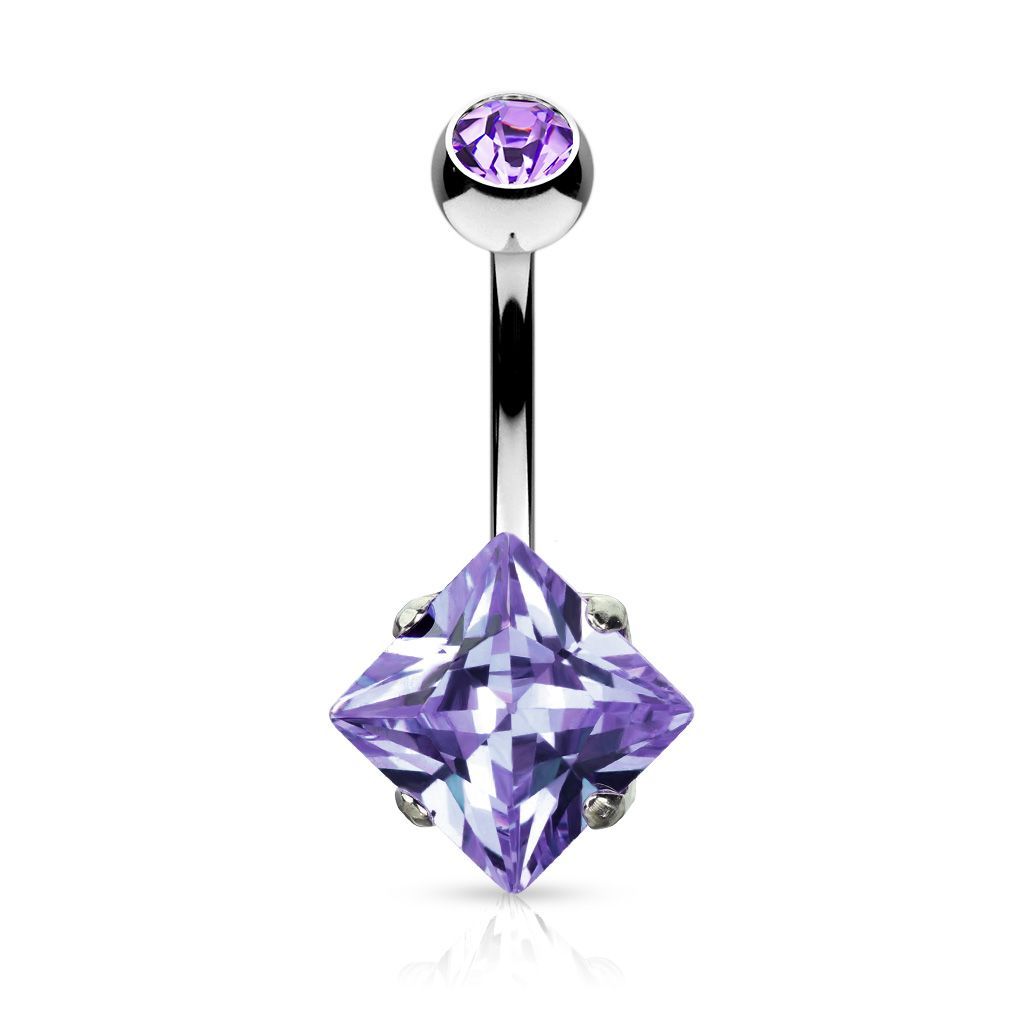 Piercing do pupíku - čtvercový kamínek (růžová)