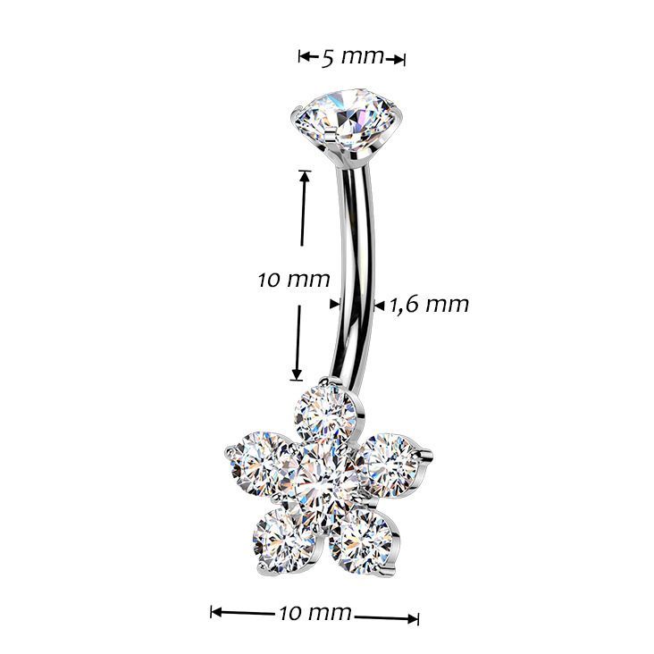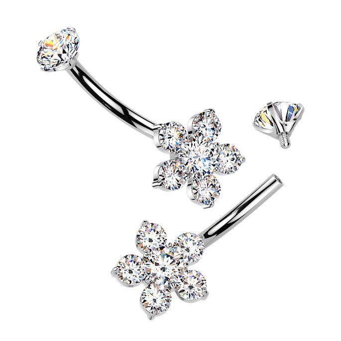 Piercing do pupíku z titanu G23 s kytičkou zdobenou čirými zirkony.
