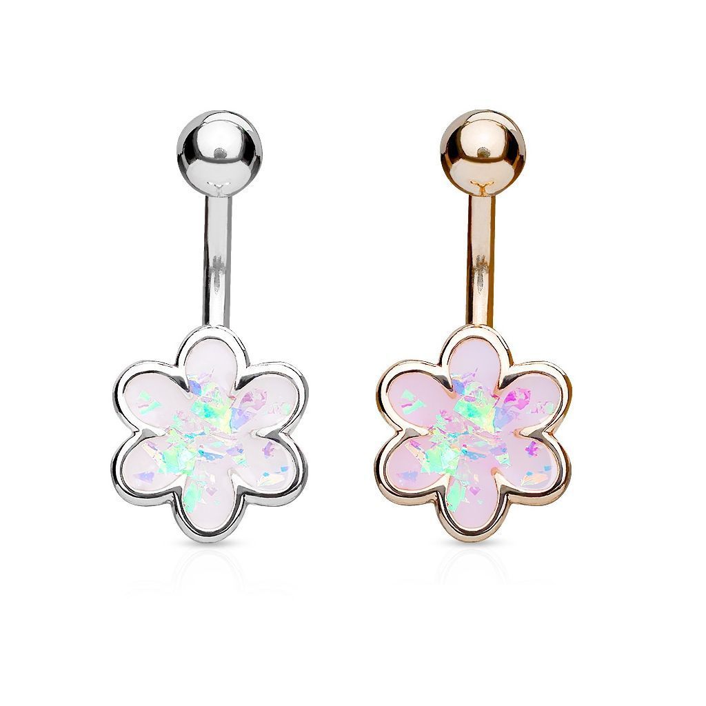 Piercingový šperk určený pro piercing pupíku. S květinkou, kytičkou.