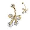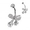 Piercingový šperk určený pro piercing pupíku. S ozdobou ve tvaru mašle. Mašlička je bohatě zdobena čirými zirkony.