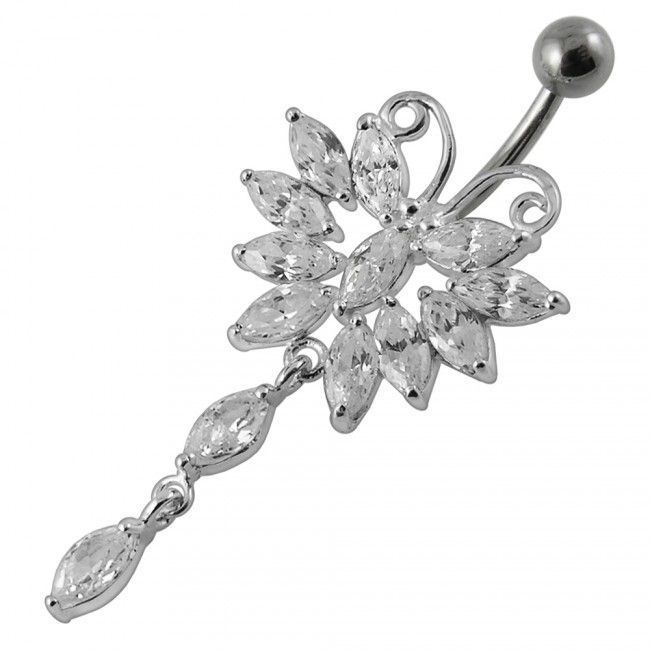 Piercingový šperk určený pro piercing pupíku. S ozdobou motýla.