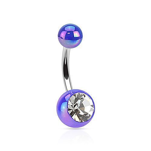 Piercing do pupíku - perleťový lesk a zirkon (modrý)