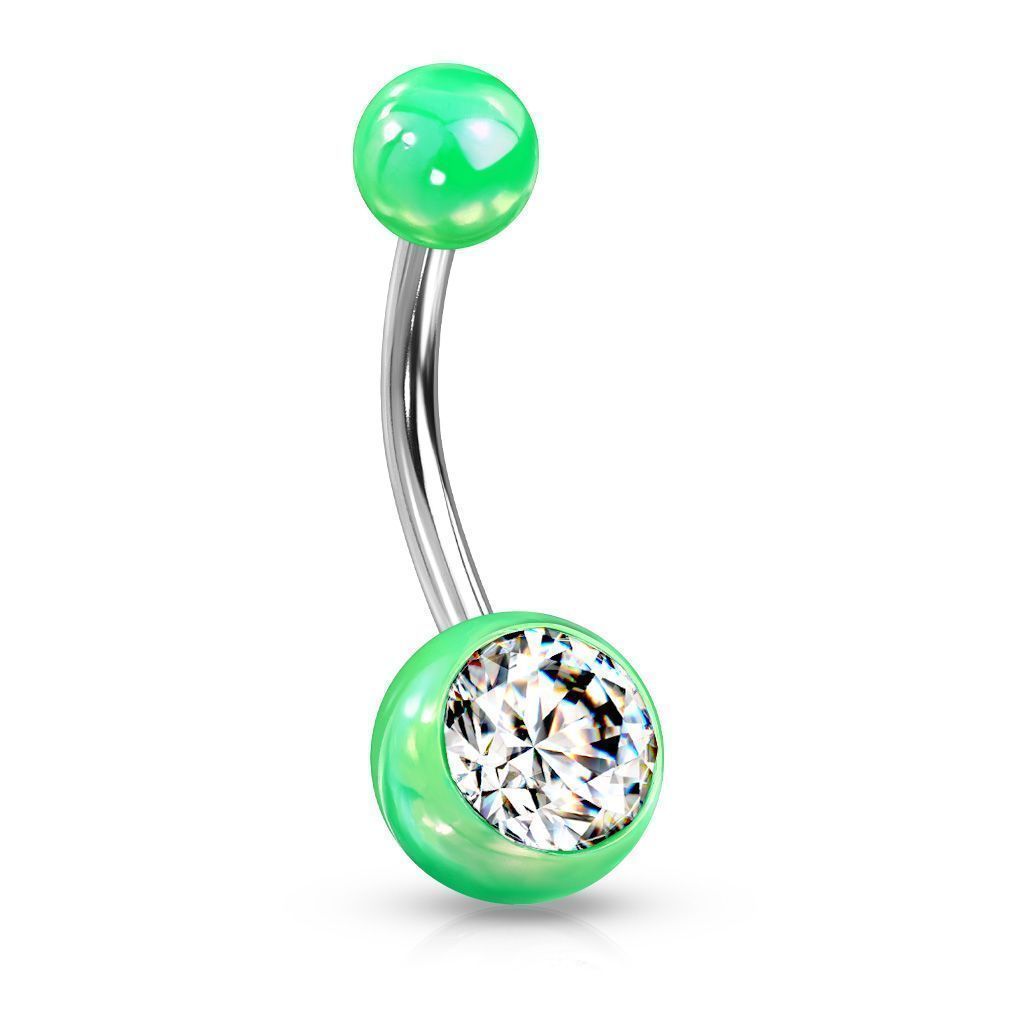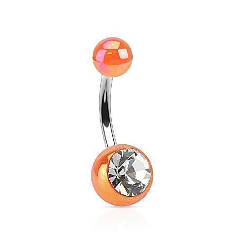 Piercing do pupíku - perleťový lesk a zirkon (červený)