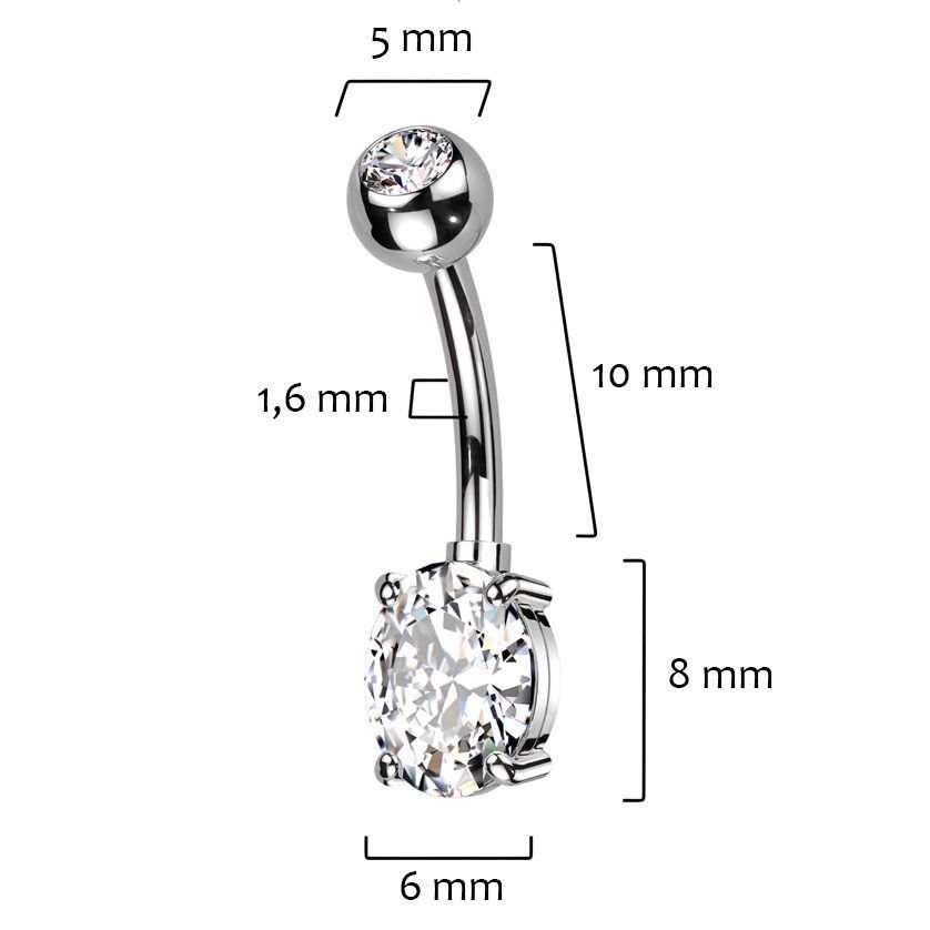 Piercingový šperk určený pro piercing pupíku. Se zirkonem oválného tvaru.