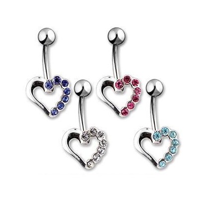 Piercingový šperk určený pro piercing pupíku. S ozdobou srdíčka z kvalitní bižuterie. Srdce je z poloviny osázeno zirkony.