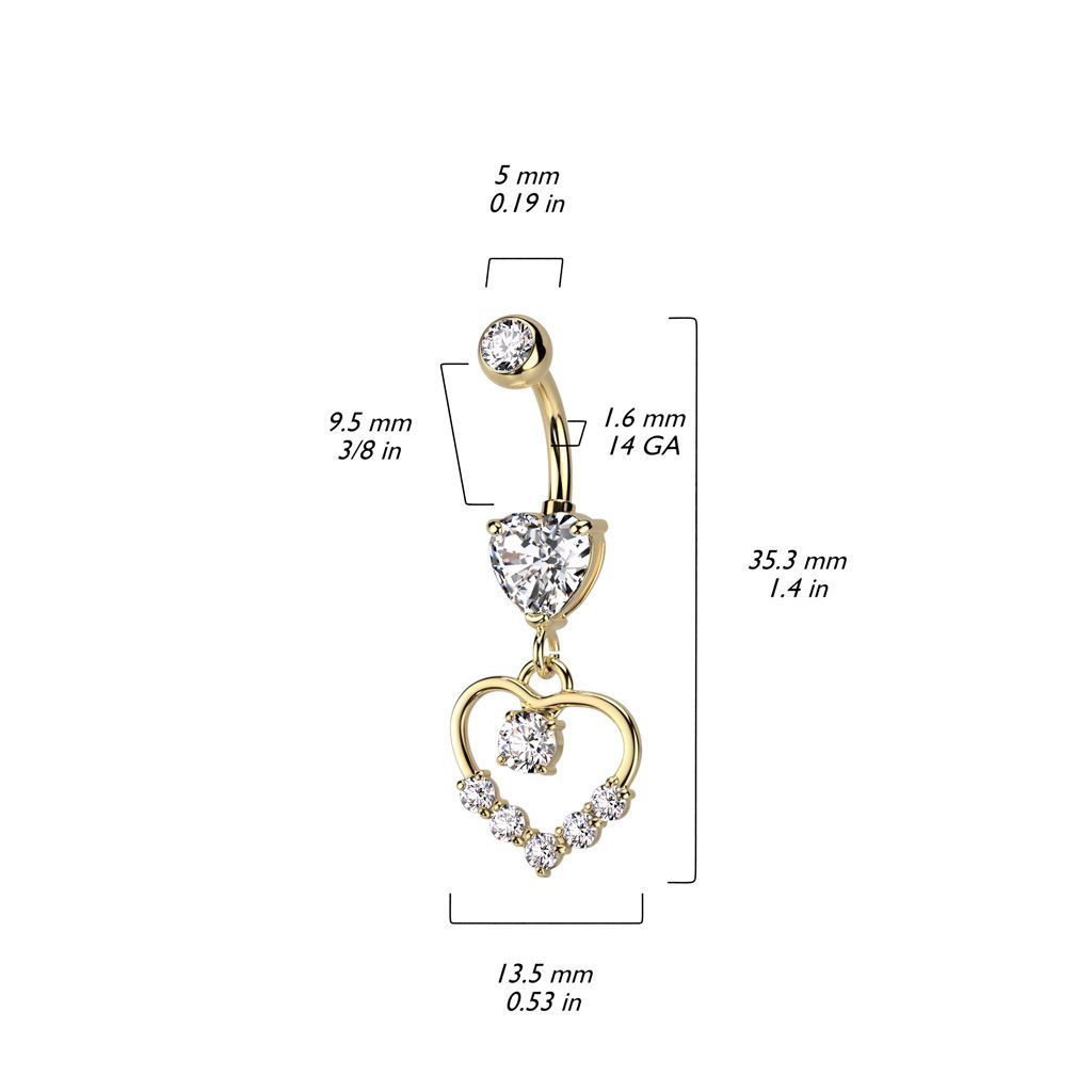 Piercing banánek do pupíku s ozdobou srdíčka. Srdce je zdobeno čirými zirkony.