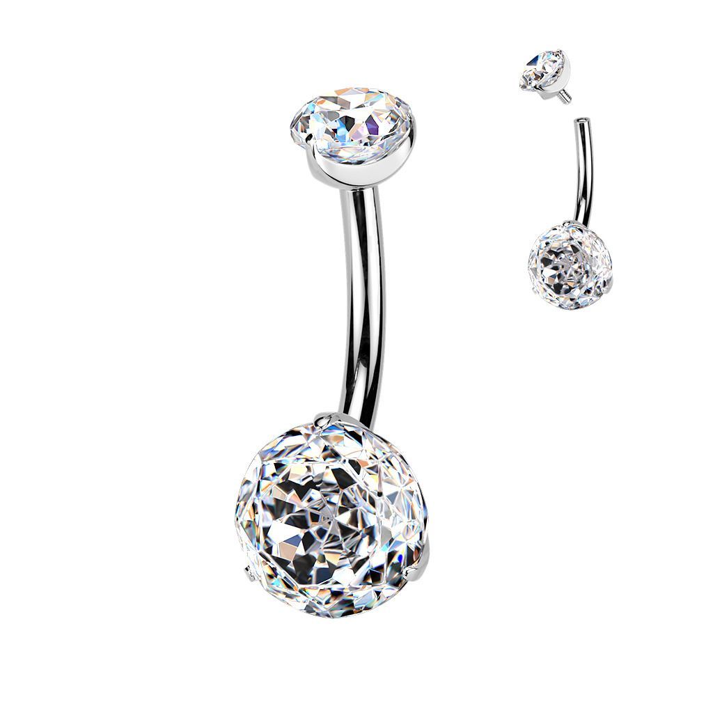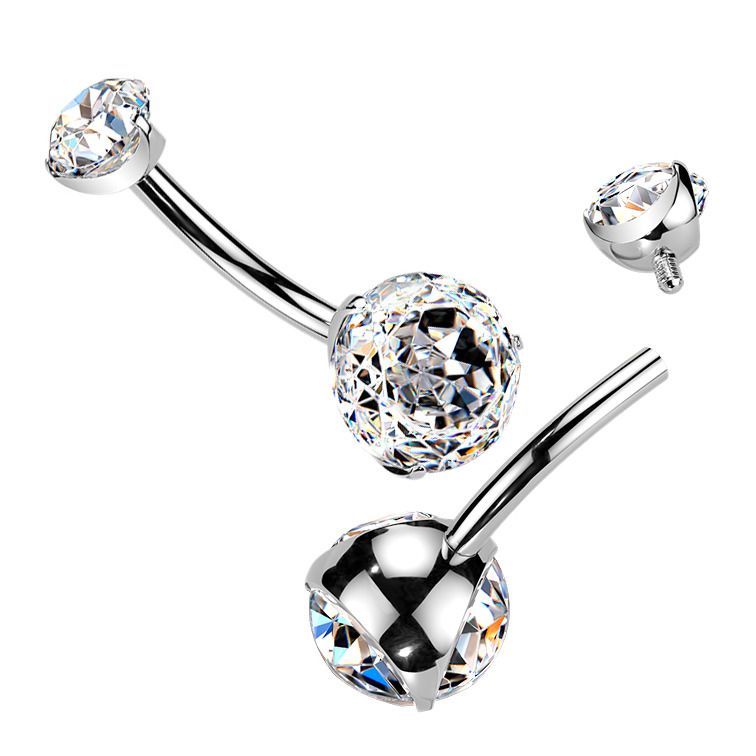 Titanový piercing do pupíku zdobený překrásně broušenými zirkony čiré barvy.