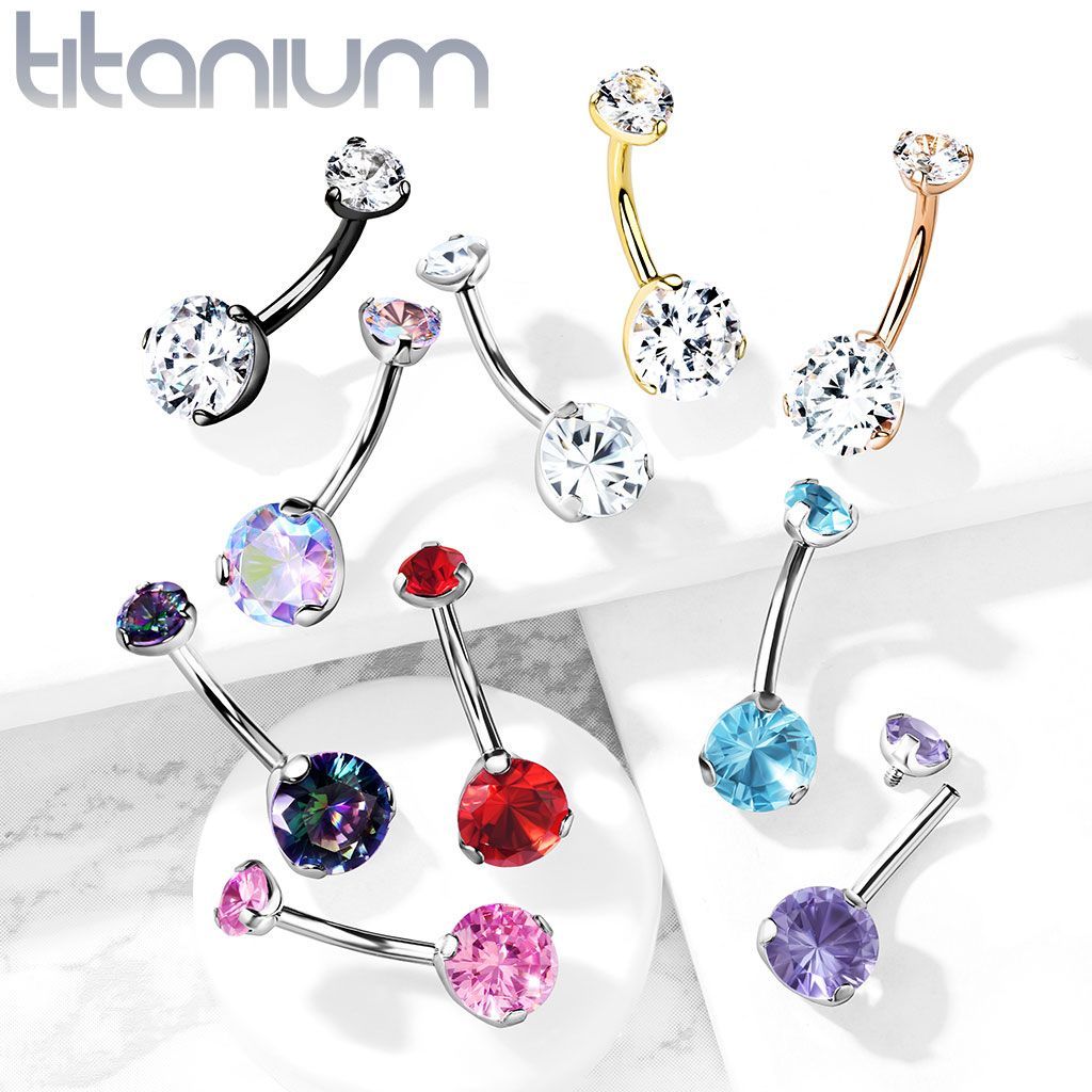 Piercing do pupíku vnitřní závit, zirkon - TITAN (duhová)