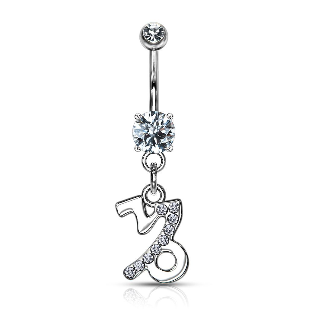 Piercingový šperk určený pro piercing pupíku. S ozdobami znamení zvěrokruhu z kvalitní bižuterie.