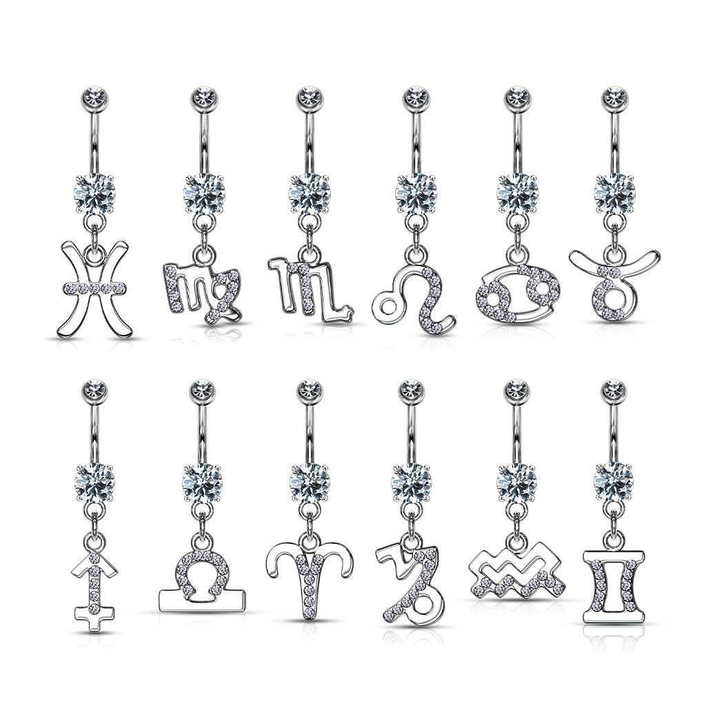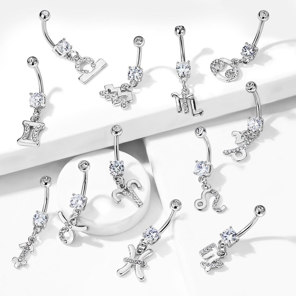 Piercingový šperk určený pro piercing pupíku. S ozdobami znamení zvěrokruhu z kvalitní bižuterie.