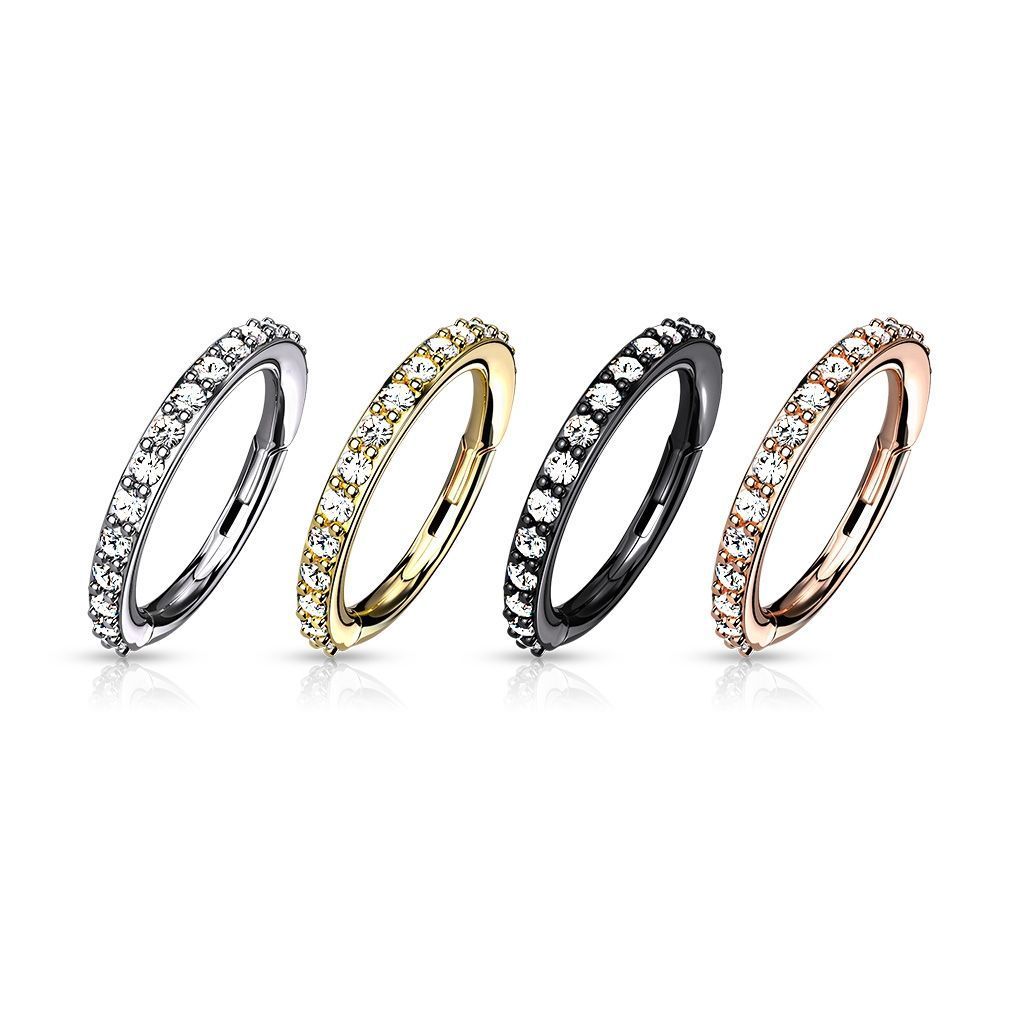 Piercing - segment kruh otevírací zdobený zirkony čiré barvy.