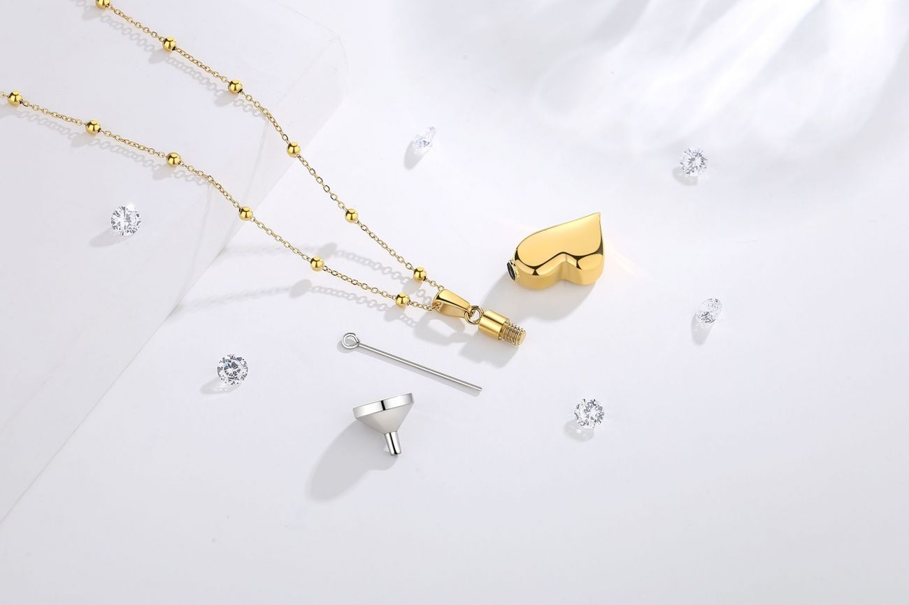 Tento pietní přívěsek je zhotoven z kvalitní chirurgické oceli 316L a opatřen zlacením pomocí odolné PVD technologie. Motiv srdce v asymetrickém provedení symbolizuje lásku, blízkost a trvalou vzpomínku, díky čemuž představuje důstojný způsob, jak uchovat památku na ty, kteří ve vašem srdci mají výjimečné místo.