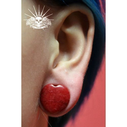 Plug do ucha srdce - kámen červený jadeit (12 mm)