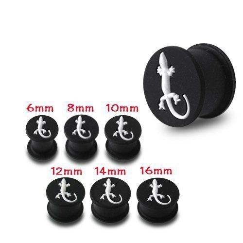 Černý silikonový plug s bílou 3D ještěrkou (gekonem).