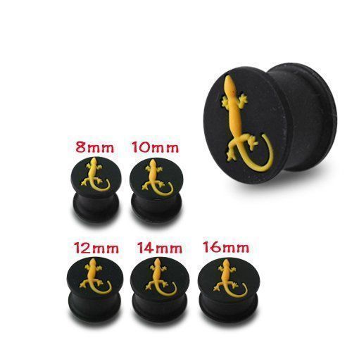 Černý silikonový plug s oranžovou 3D ještěrkou (gekonem).