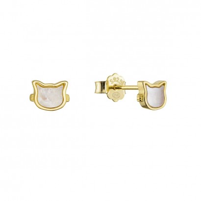 Pozlacené stříbrné náušnice kočky s perletí 11711.1