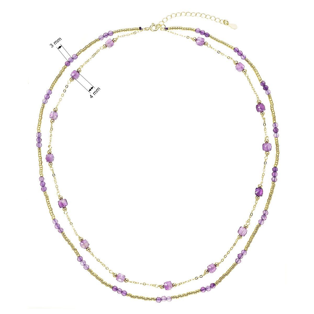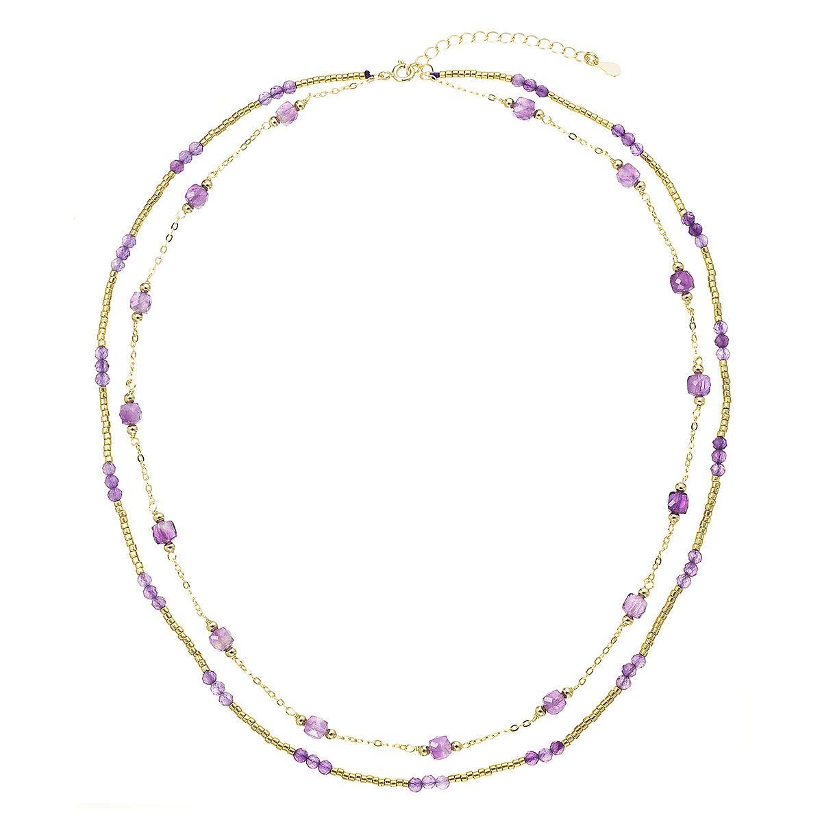 Okouzlující jemný dvouřadý náhrdelník s drobnými přírodními kamínky ametysty působí lehce a elegantně.
