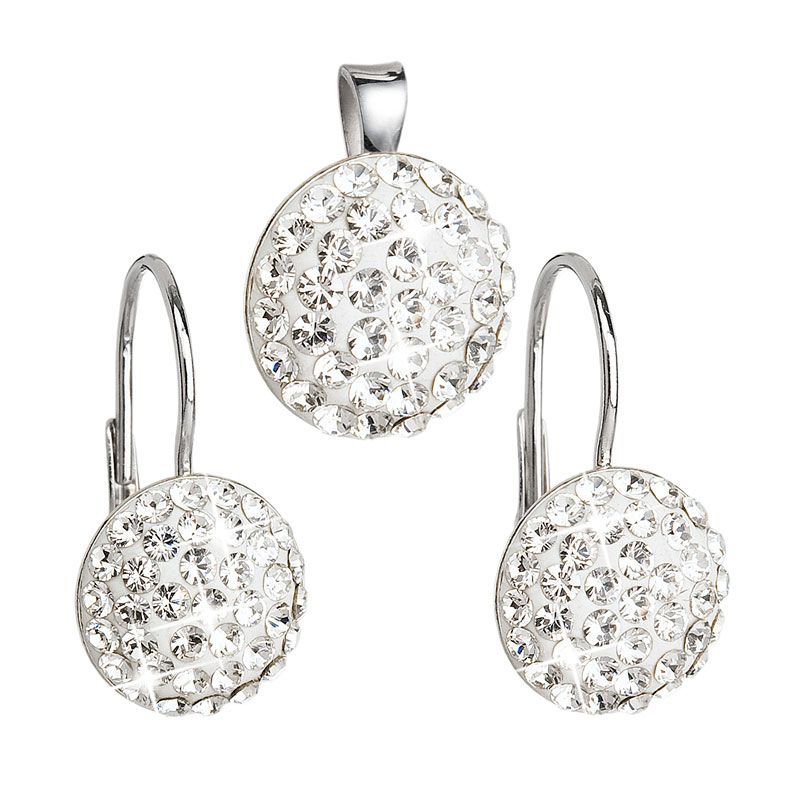 Sada šperků s krystaly Swarovski náušnice a přívěsek bílé kulaté 39086.1