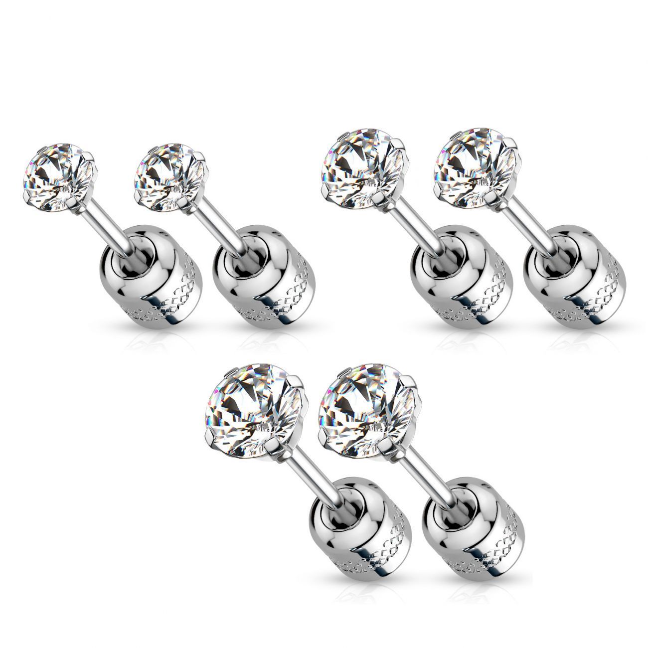 Tyto náušnice mají inovativní design se šroubovacím typem zapínání, což zajišťuje jejich pevný a pohodlný úchyt. Jsou vyrobeny z kvalitní chirurgické oceli, což zaručuje trvanlivost a odolnost. Tento materiál je šetrný k pokožce, což umožňuje pohodlné nošení bez rizika alergií. Náušnice jsou zdobeny nádhernými broušenými zirkony velikostí - 3 mm, 4 mm nebo 5 mm. Kamínek zachycuje a odráží světlo, což dodává náušnicím zářivý lesk a elegantní krásu. V zadním šroubku je navíc zasazen čirý zirkon, který přidává náušnicím další vrstvu elegance. Díky šroubovacímu zapínání a možnosti nošení oboustranně můžete náušnice snadno přizpůsobit svému stylu a náladě. Tyto náušnice jsou skvělým doplňkem pro každodenní nošení, stejně jako pro speciální příležitosti, kdy budou zářit na vašich uších.