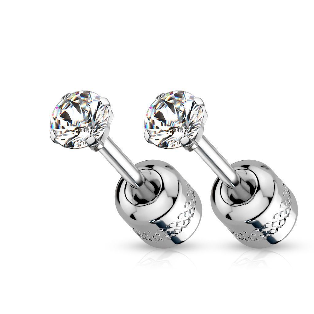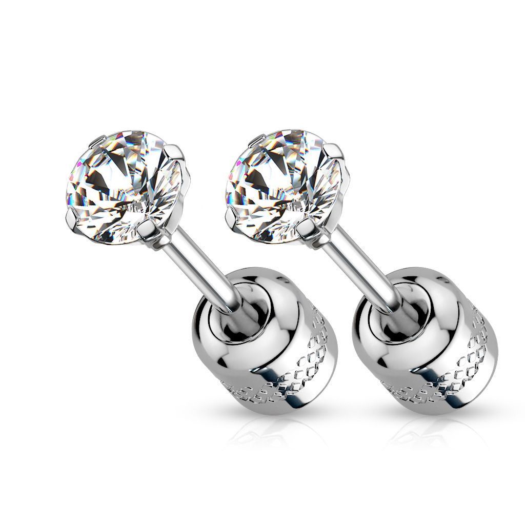Tyto náušnice mají inovativní design se šroubovacím typem zapínání, což zajišťuje jejich pevný a pohodlný úchyt. Jsou vyrobeny z kvalitní chirurgické oceli, což zaručuje trvanlivost a odolnost. Tento materiál je šetrný k pokožce, což umožňuje pohodlné nošení bez rizika alergií. Náušnice jsou zdobeny nádhernými broušenými zirkony velikostí - 3 mm, 4 mm nebo 5 mm. Kamínek zachycuje a odráží světlo, což dodává náušnicím zářivý lesk a elegantní krásu. V zadním šroubku je navíc zasazen čirý zirkon, který přidává náušnicím další vrstvu elegance. Díky šroubovacímu zapínání a možnosti nošení oboustranně můžete náušnice snadno přizpůsobit svému stylu a náladě. Tyto náušnice jsou skvělým doplňkem pro každodenní nošení, stejně jako pro speciální příležitosti, kdy budou zářit na vašich uších.