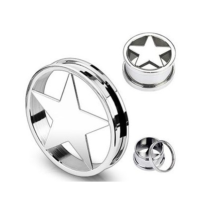 Šperky (17773) > Piercing (3907) > Tunely a plugy (310) > chirurgická ocel 316L (131) > Šroubovací ocelový tunel hvězda (12 mm)
