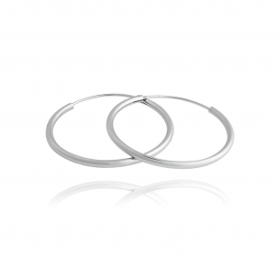 Stříbrné náušnice kruhy o šíři 2 mm a průměru 55 mm.