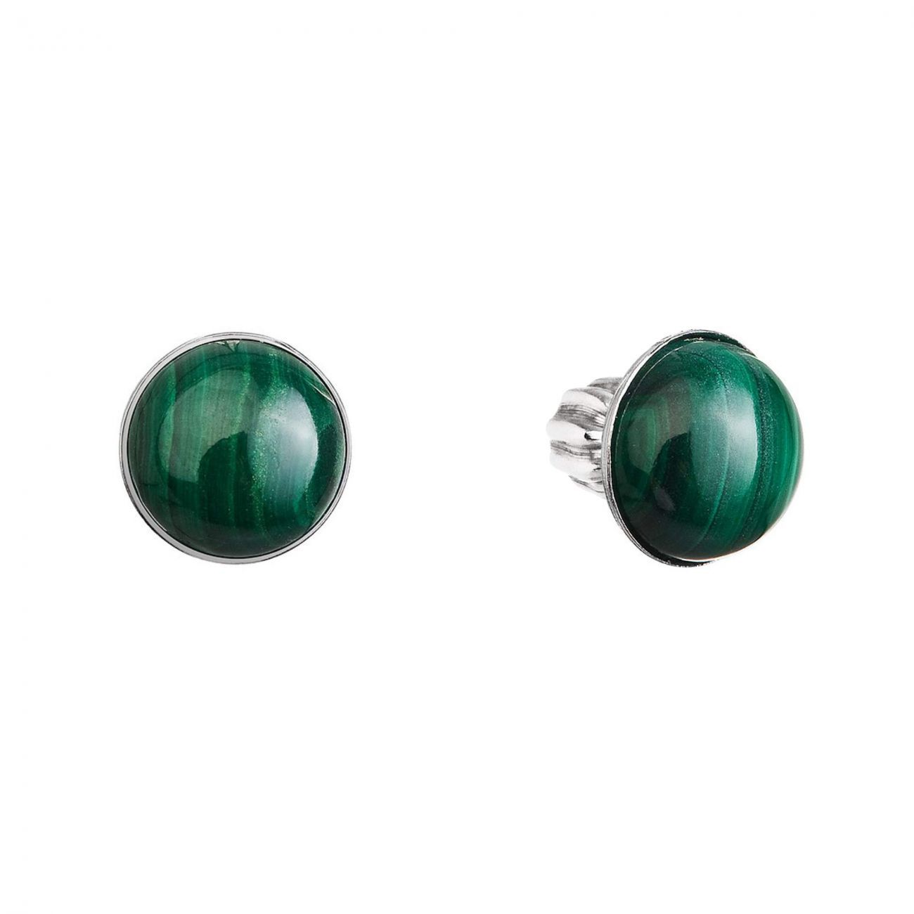 Stříbrné náušnice pecky s pravými minerálními kameny kulaté 11491.3 Malachit