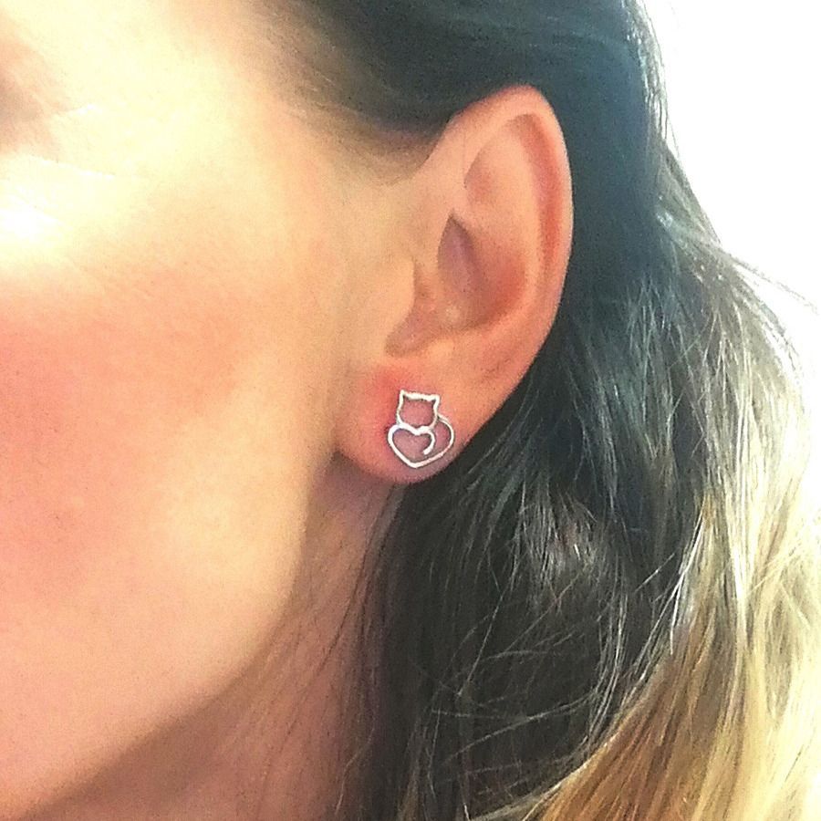 Stříbrné náušnice šroubovací - kočky