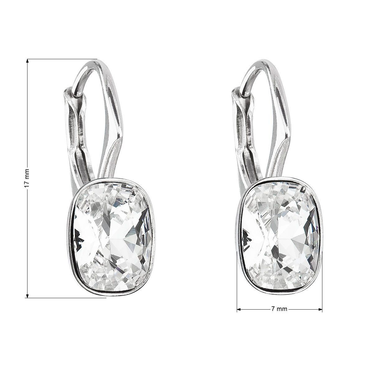 Stříbrné náušnice visací s krystaly Swarovski bílý obdélník 31278.1