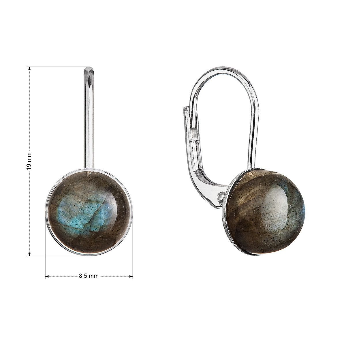 Stříbrné visací náušnice s pravými minerálními kameny kulaté 11481.3 Labradorit