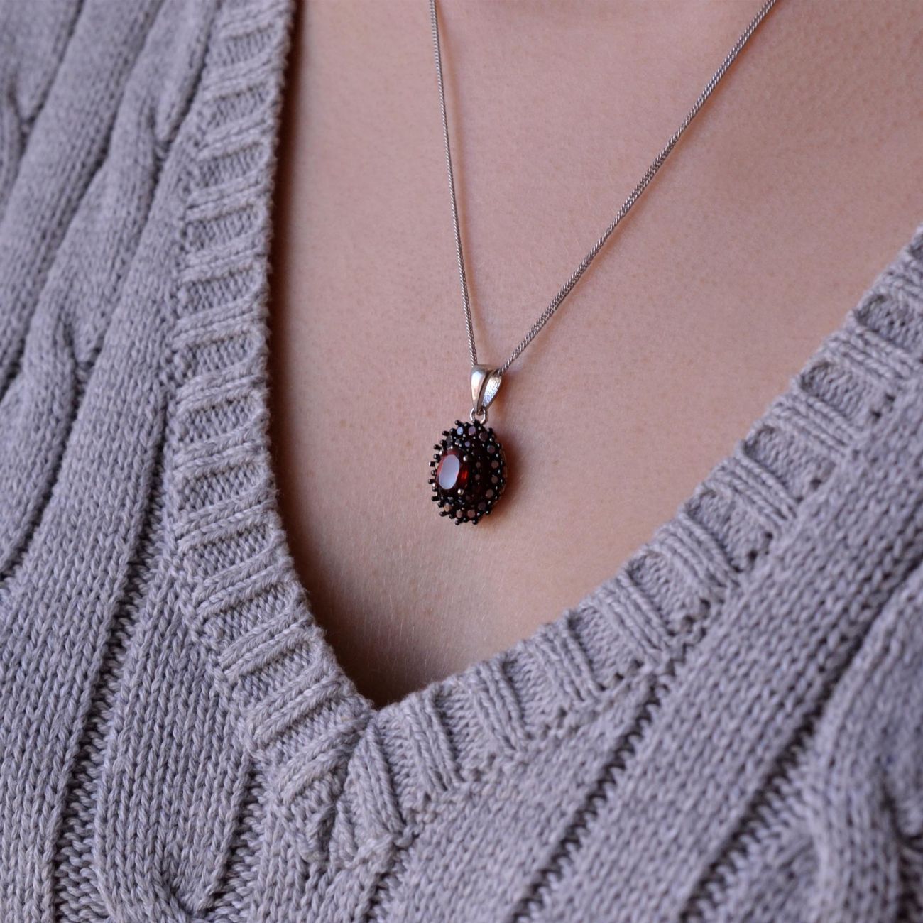 Luxusní stříbrný náhrdelník je bohatě zdobený pravými granáty!