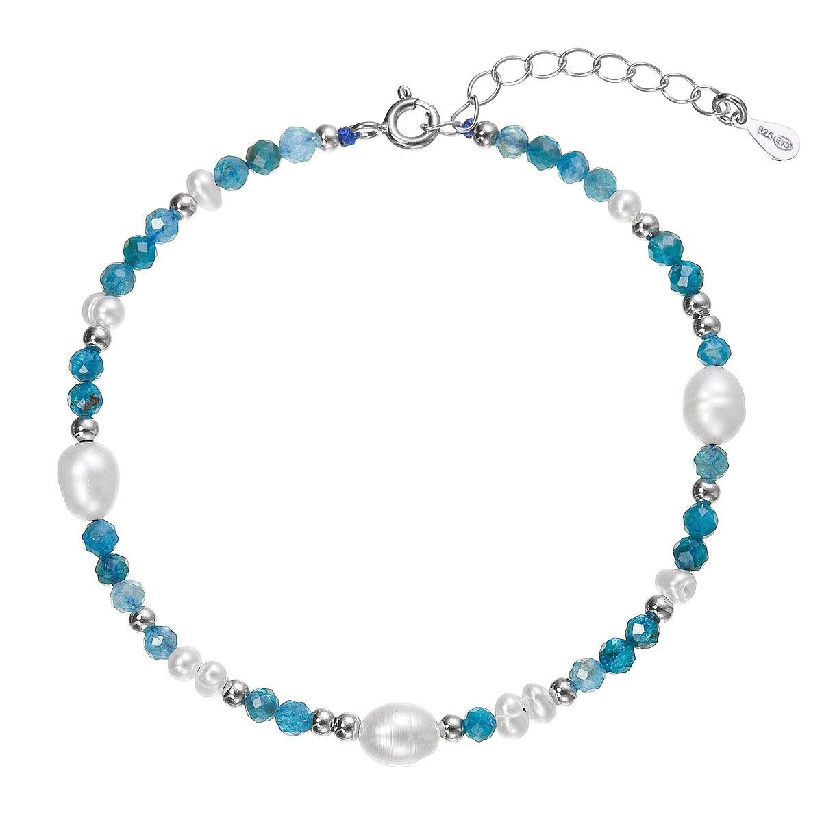 Tento jemný a elegantní náramek je tvořen kombinací pravých říčních perel různých tvarů a drobných korálků apatitu v krásné modré barvě. Lesklé perly s přirozeným perleťovým odleskem působí luxusně, zatímco apatity dodávají šperku svěžest a lehce mořský nádech.