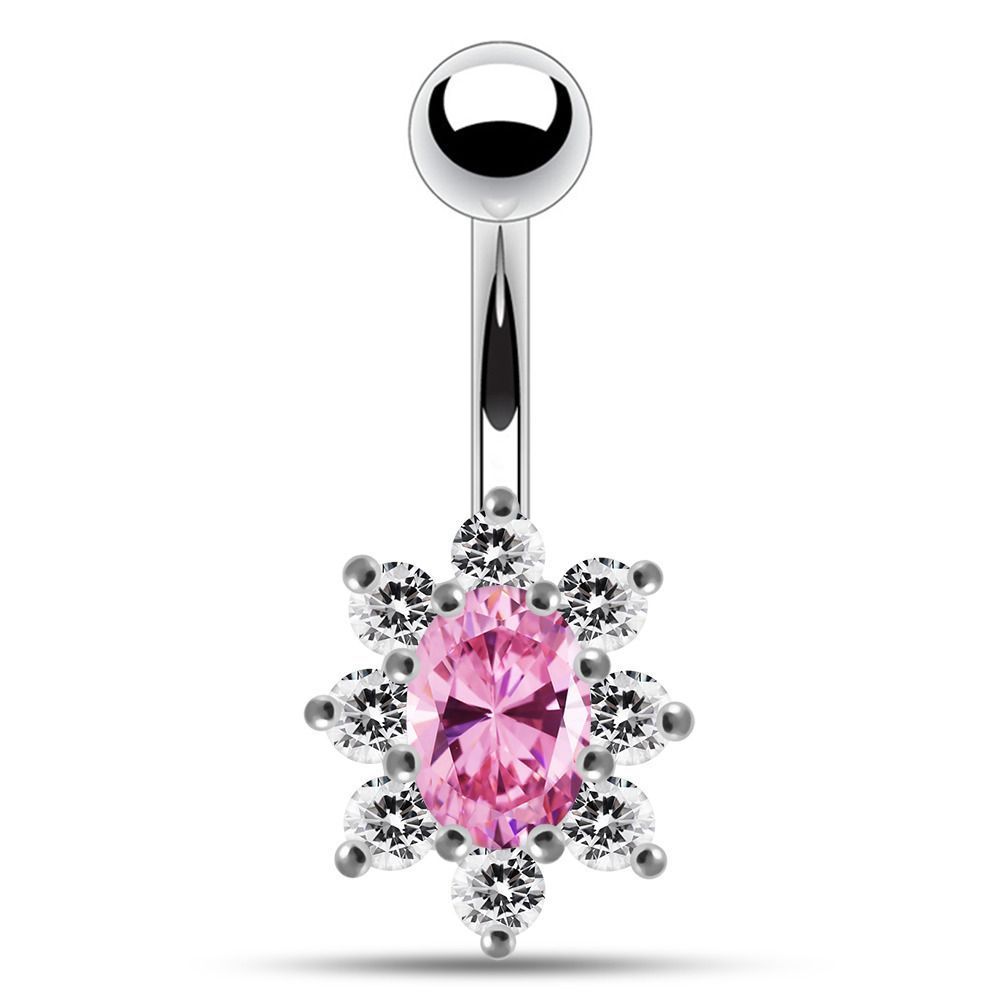 Piercingový šperk určený pro piercing pupíku. Piercing s kamenem a zirkony.