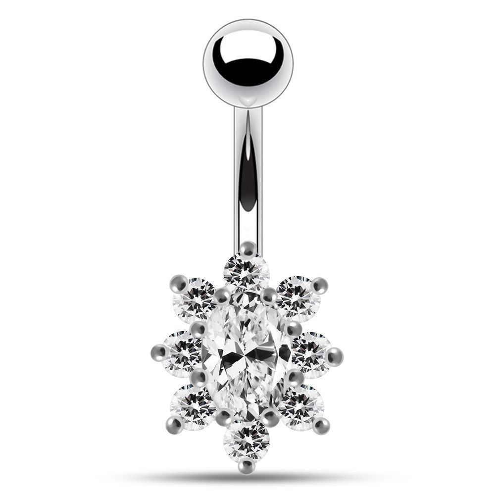 Stříbrný piercing do pupíku (čirá/čirá)