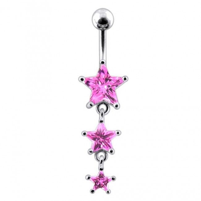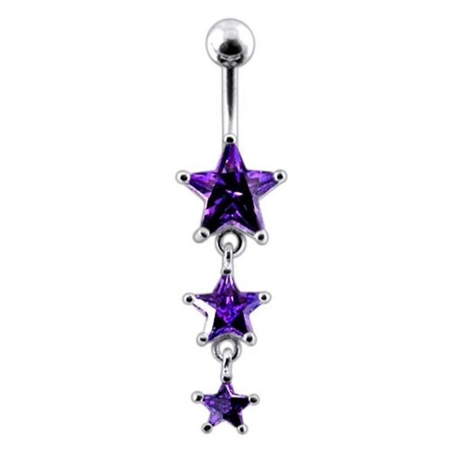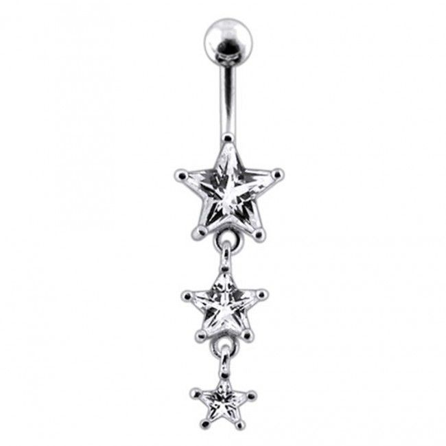 Piercingový šperk určený pro piercing pupíku. Se stříbrnou visací ozdobou - hvězdičky, hvězdy.